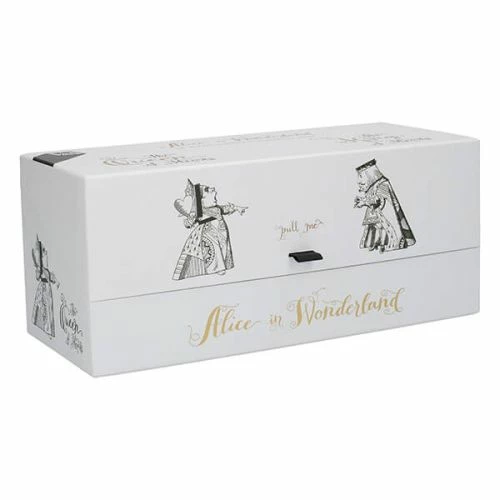 Portraying scenes of the King and Queen of Hearts, the illustrations are hand-drawn in black and white with a touch of luxury gold decal.