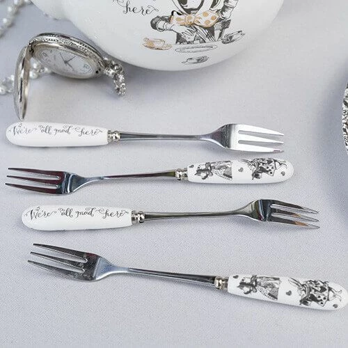 - Bring a touch of whimsy to your tea parties with the Alice In Wonderland Set of 4 Pastry Forks. These elegant forks are perfect for serving desserts, pastries, and more.