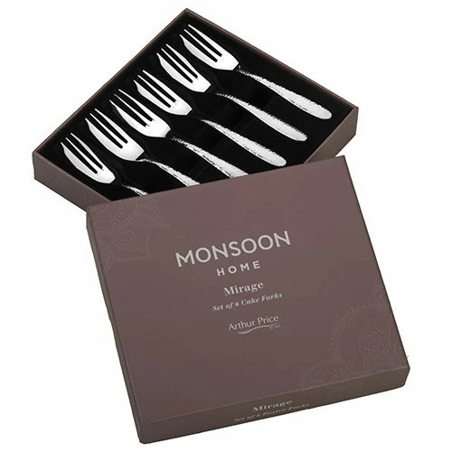 - Enhance your dessert presentation with the Arthur Price Monsoon Mirage Set of 6 Pastry Forks. These forks are designed with a sleek, modern look, making them a perfect addition to any dining table.