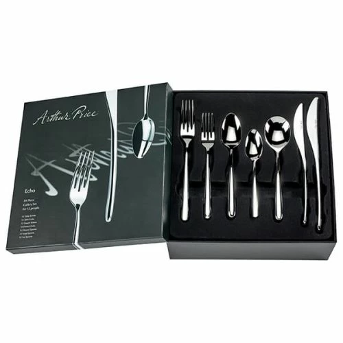 This 84 piece boxed cutlery set for 12 people is from the Echo collection which forms part of the Arthur Price Signature range of cutlery.