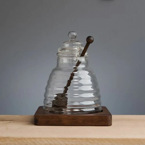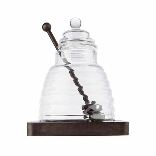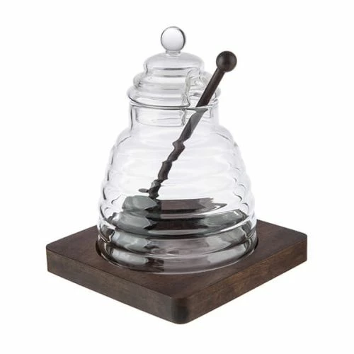 - Includes a natural wooden dipper for easy honey serving. The dipper is smooth, durable, and adds a rustic charm to your tableware collection.