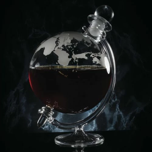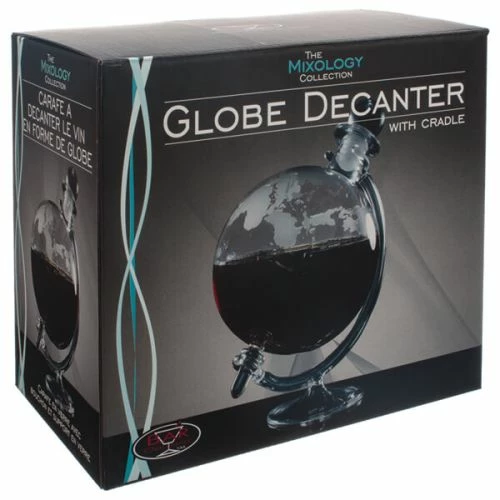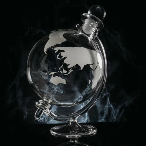 Now you can literally drink the world dry with this classic Bar Originale Globe Decanter. This hand blown borosilicate glass globe harks back to yesteryear and will hold a full bottle of your favourite tipple in style. Hold the whole world in your hands when you pour a drink or, when empty, watch the world go by as the globe can be turned gently on its axis as it balances in the glass cradle.