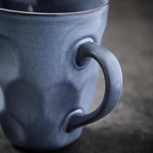 Each mug is unique thanks to its own individual dimple effect and the use of a reactive glaze. The natural colourways used add a subtle rustic charm to this 4 piece mug set.