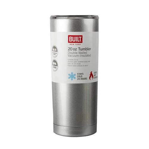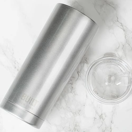 - Stay refreshed on the go with the Built 568ml Double Walled Stainless Steel Travel Mug. Its double-walled insulation keeps your beverages hot for up to 12 hours or cold for up to 24 hours.