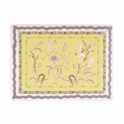 The Cath Kidston Wisteria Cork Back Pack of 4 Rectangular Placemats are beautifully designed in hues of pastel purple, yellow and pink. With a delicate floral border and centerpiece to tie in with the classic Cath Kidston floral theme. The cork back prevents your furniture from getting scratched, and can help absorb any moisture from spillages.