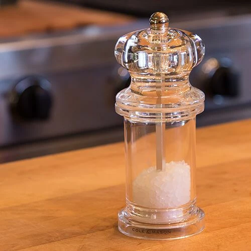 - The Cole & Mason 505 Clear Acrylic Precision Salt Mill combines sleek design with exceptional functionality. Its clear acrylic body showcases the high-quality salt within, making it a stylish addition to any table setting.