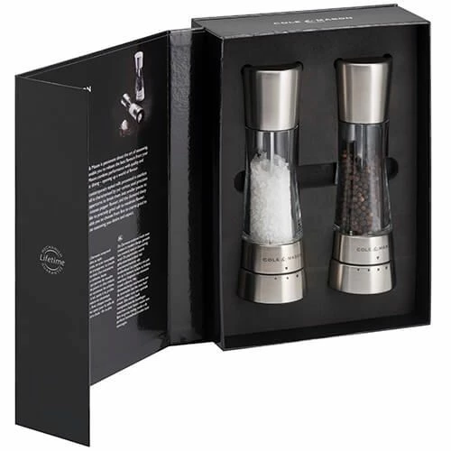 • Enjoy free UK delivery on your purchase. Add the Cole & Mason Derwent Gourmet Precision Stainless Steel Salt & Pepper Gift Set to your cart today and experience gourmet seasoning at its finest.