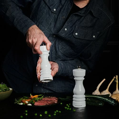 Season with confidence with the Cole & Mason London 18cm White Gloss Gift Set. Comprising a salt and pepper mill and crafted from high grade beech wood finished in gloss with a stainless steel knob, these London mills are inspired by the beautiful, Art Deco and industrial British architecture that can be found throughout the city of London and honours both Cole & Mason’s heritage whilst looking to the future with their classic, yet contemporary aesthetic. Their timeless design would make a stylish addition to both modern and traditional kitchens.