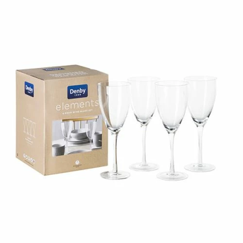 - Elevate your dining experience with the Denby Elements Set Of 4 Wine Glasses. Designed for both style and functionality, these glasses are a must-have for any wine enthusiast.