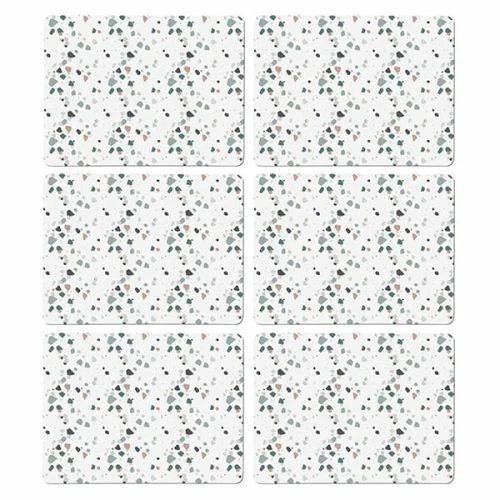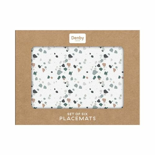 - Enhance your dining table with the Denby Elements Set of 6 Terrazzo Effect Neutrals Placemats. These placemats feature a unique terrazzo-inspired design in neutral tones, adding a touch of modern elegance to your tableware.