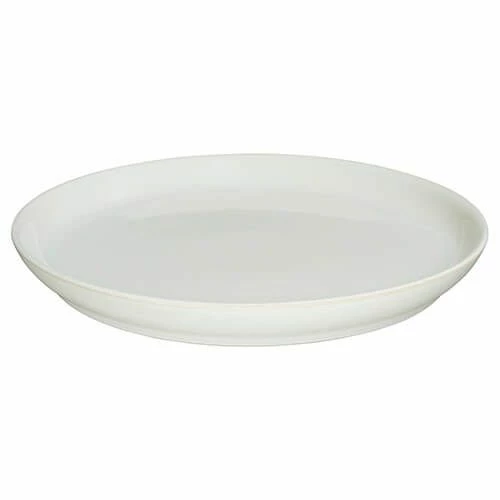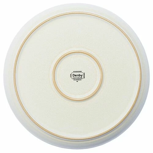 - Crafted from high-quality stoneware, the Denby Linen Coupe Dinner Plate is durable, chip-resistant, and built to last. Its robust construction ensures it can withstand daily use.