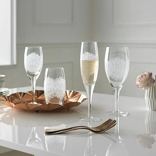 - Crafted with precision, the Denby Monsoon Filigree Champagne Flute Pack of 2 features a stunning filigree design, adding a touch of elegance to your drinkware collection.