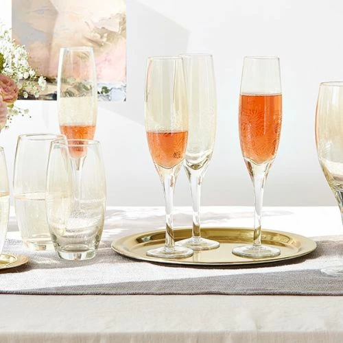 - Crafted by Denby, a renowned brand in premium drinkware, these champagne flutes feature a stunning gold finish and a sleek, modern design.