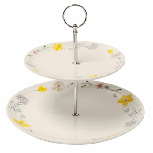 English Tableware Company Pressed Flowers 2 Tier Cake Stand