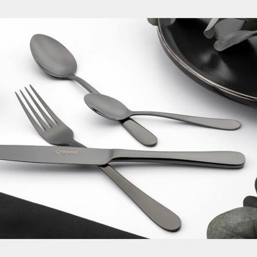 Due to the finish of this stunning Windsor black cutlery set, this 2.5mm gauge flatware is hand wash only.