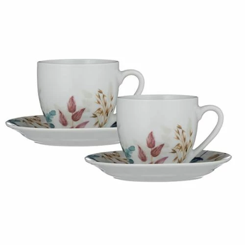 The Price & Kensington Set of 2 Cup & Saucers are crafted from fine porcelain. Featuring dried florals in a hand painted style, the cups with coordinating saucers are perfect for entertaining.