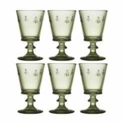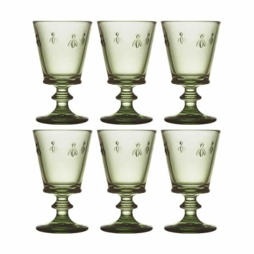 - Elevate your wine-drinking experience with the La Rochere Bee Stemmed Wine Glass Set of 6. Each glass is beautifully designed in a stunning olive green hue, adding a touch of elegance to your table setting.