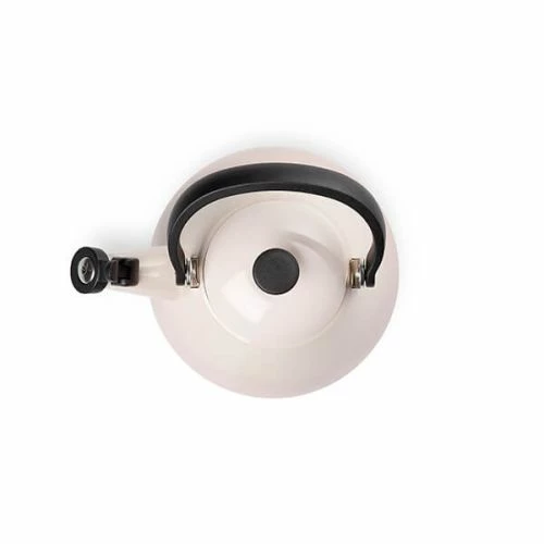 Elevate the everyday ritual of brewing tea or coffee with this stylish Le Creuset Shell Pink Kone Kettle. This delightful stovetop kettle is crafted from enamelled steel and features a wide base for efficient heating. The handle of this kettle is locked in an upright position for steady pouring. A whistle lets you know when the water has come to a boil.