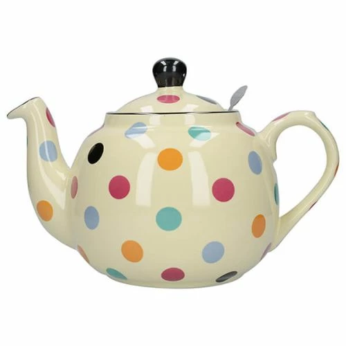 - The London Pottery Farmhouse Filter 6 Cup Teapot features a timeless Multi Spot design, making it a charming addition to any kitchen. Its durable ceramic construction ensures long-lasting use.