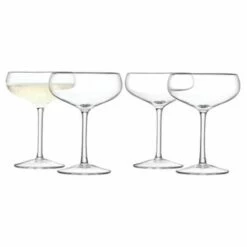 This elegant set of four Champagne Saucers is part of the LSA Wine collection. The coupe shaped design is perfect for Champagne or Prosecco and features a wide bowl with a short stem.