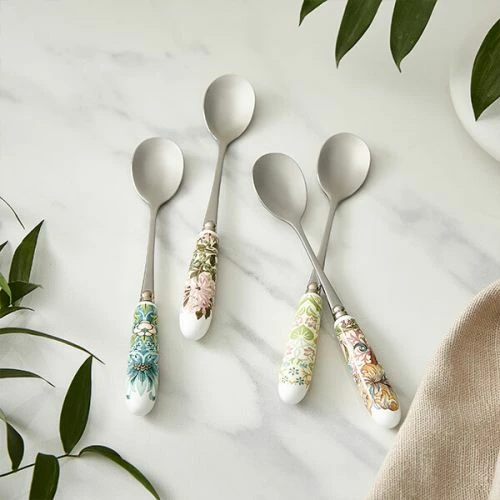 - Elevate your tea time with the Morris & Co Set of 4 Tea Spoons. Crafted with precision, these spoons feature a timeless design inspired by the iconic Morris & Co patterns.