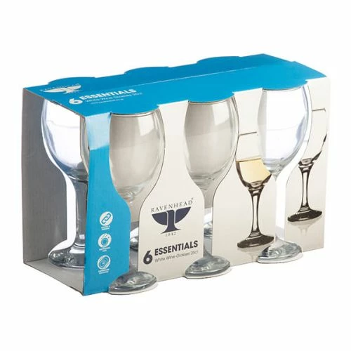 - Elevate your dining experience with the Ravenhead Essentials 250ml Set of 6 White Wine Glasses. Designed for both casual and formal occasions, these glasses are a must-have for any wine enthusiast.