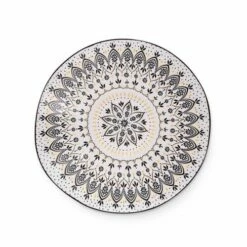 The Sara Miller Artisanne Noir Medium Serving Bowl in Mandala brings a Middle Eastern flare to your dining room with a beautiful, unique, paisley design, decorated in a monochrome palette with gold detailing for a truly unique style.