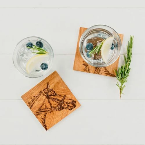 Handcrafted from sustainably grown Scottish oak, the Just Slate Company Set of 2 Horse Oak Coasters make a lovely table piece to set your drinks on. These beautiful wooden coasters feature an engraved, hand illustrated image of a handsome horse.