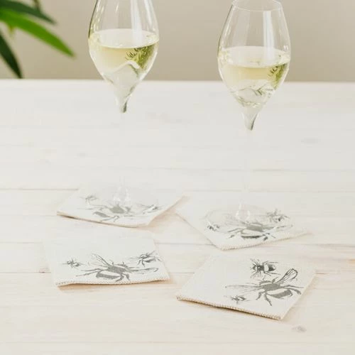 The Just Slate Company Set of 4 Bee Linen Coasters can be teamed with matching linen napkins, place mats and table runners for a natural, pared back look.