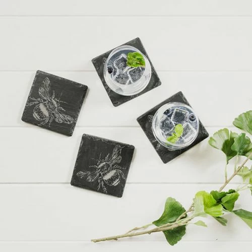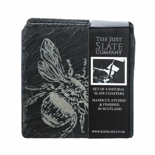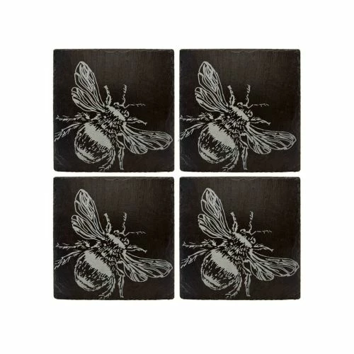 • Enhance your table setting with the Set of 4 Bee Slate Coasters by The Just Slate Company. These coasters are crafted from high-quality slate, ensuring durability and a natural, rustic look.