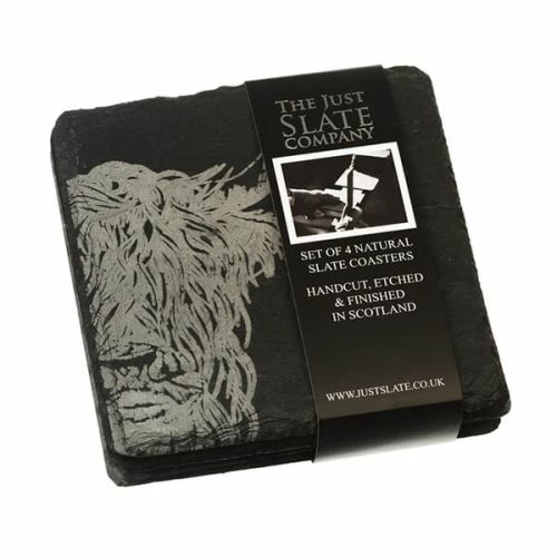Beautifully handcrafted in Scotland, the Just Slate Company Set of 4 Highland Cow Slate Coasters make a lovely table piece for your guests to set their drinks on. Each square slate coaster has been engraved with a stunning hand-illustrated engraving of a shaggy and loveable highland cow.