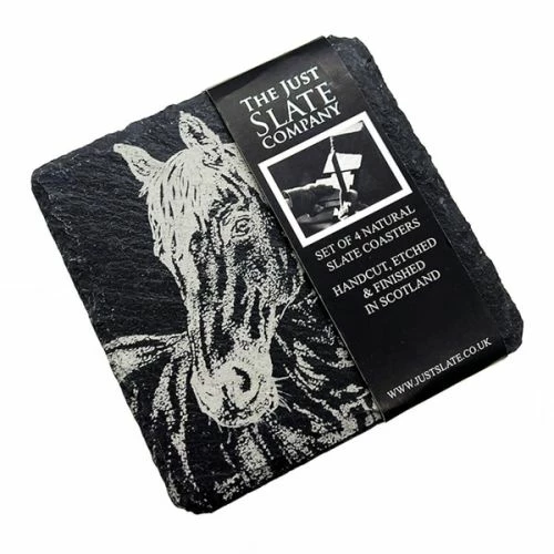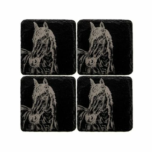 - Enhance your table setting with the Set of 4 Horse Portrait Slate Coasters by The Just Slate Company. These coasters feature stunning horse portraits, adding a touch of sophistication to any dining experience.