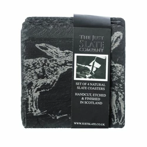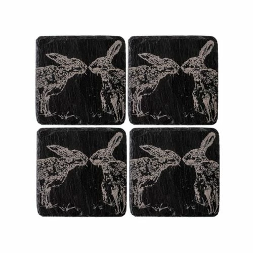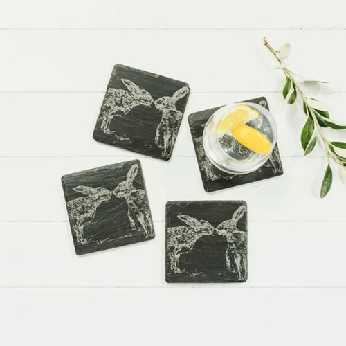 - Enhance your table setting with the Set of 4 Kissing Hares Slate Coasters by The Just Slate Company. These coasters are crafted from high-quality slate, ensuring durability and a timeless aesthetic.