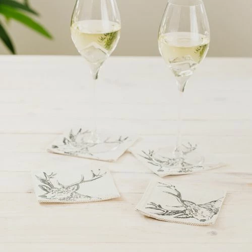 The Just Slate Company Set of 4 Stag Linen Coasters