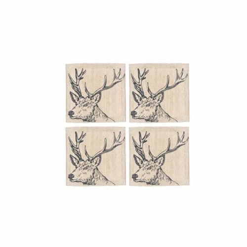 Adorn your table with these Just Slate Company Set of 4 Stag Linen Coasters for a minimalist look with an added touch of sophistication. Each of the linen/cotton blend coasters is screen printed with a unique stag design.