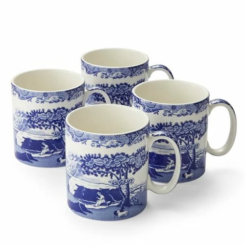 The Spode Blue Italian Set of 4 Small Mugs adopts the classic Spode blue and white design in which the brand is renowned for. They have a unique design, capturing a historic scene inspired by the Italian countryside with an Oriental border that dates back to the 18th century.