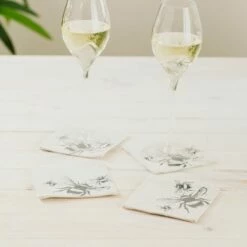 Set of 4 Bee Linen Coasters by The Just Slate Company | Stylish Tableware for Home & Office