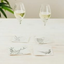 Set of 4 Country Animals Linen Coasters by The Just Slate Company | Premium Tableware