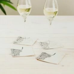 Set of 4 Highland Cow Linen Coasters by The Just Slate Company – Premium Tableware
