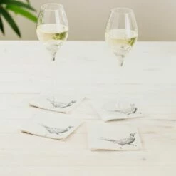 Set of 4 Pheasant Linen Coasters by The Just Slate Company | Premium Tableware