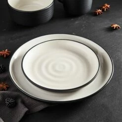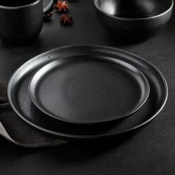 Barbary & Oak Cascade 16-Piece Dinnerware Set – Elegant Black Tableware for Stylish Dining