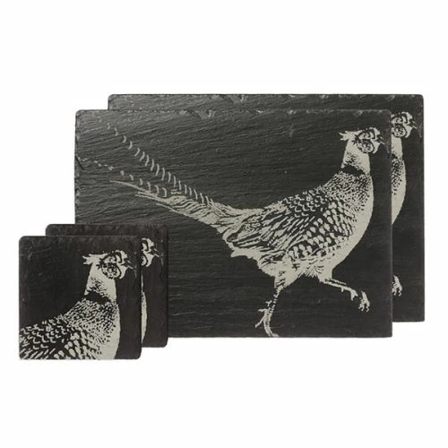 The Just Slate Company Pheasant Slate Coaster & Place Mat Set includes two place mats and two coasters.
